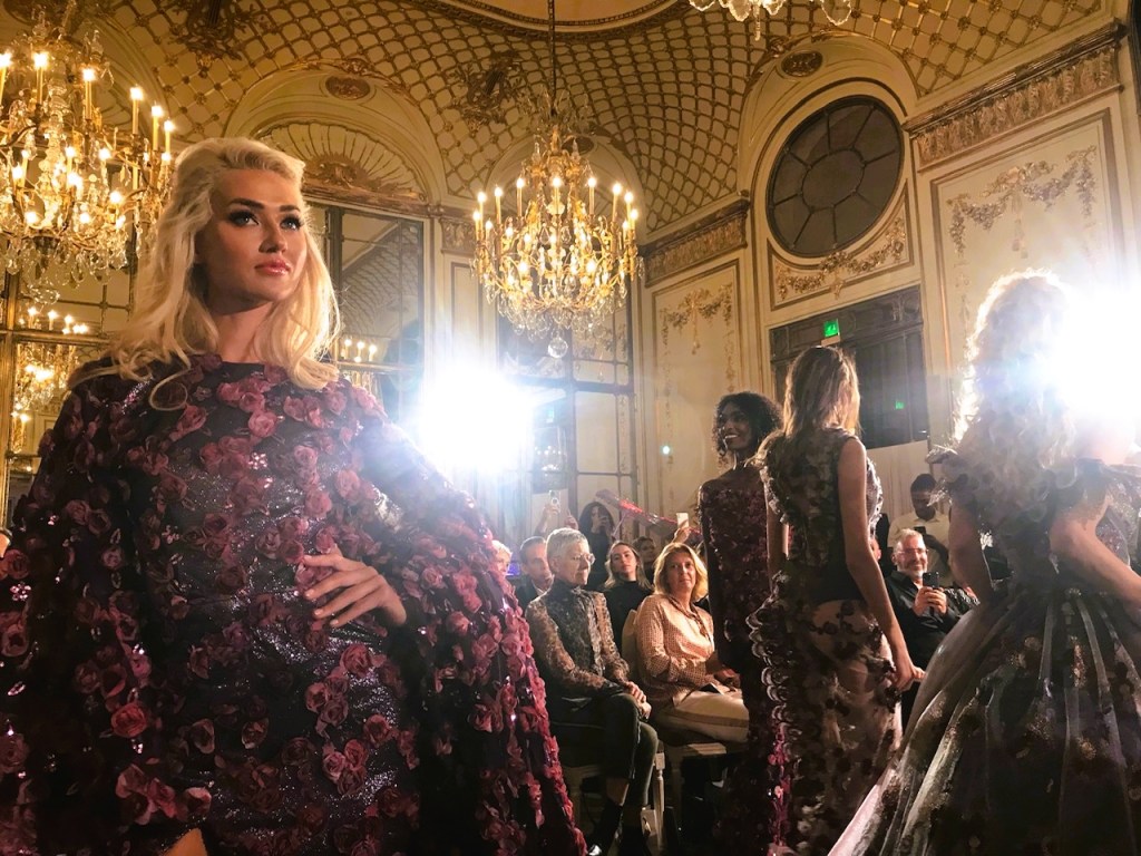 Crystal chandeliers, glided doorways, champagne, and models wearing a Lebanese designer’s floral embroidered gowns. All of those keep reminding me that Paris is a romantic city, near but far, full of fashion, fun, beauty, and fantasy. There was a je ne sais quoi moment that I had to keep reminding myself that I wasn’t watching Great Gatsby’s glamour in New York in the 1920s.