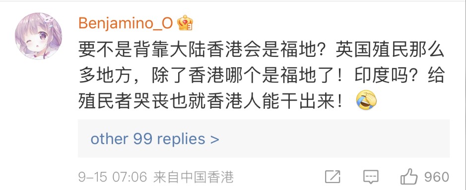 Nevertheless, other people in China seemed antipathetic towards the United Kingdom because of its history and colonialism, for instance, Hong Kong. Hong Kong actor Law Kar Ying was widely criticised by Chinese social media users for mourning the death of Elizebeth II on Weibo. Voices such as “Would Hong Kong be a ‘blessed land’ if it’s not being taken care of by China? The British colonised so many places; which country can be called a ‘blessed land’ except Hong Kong? Is it India? I can’t believe you cried for the death of a colonial invader” were highly praised on Weibo.